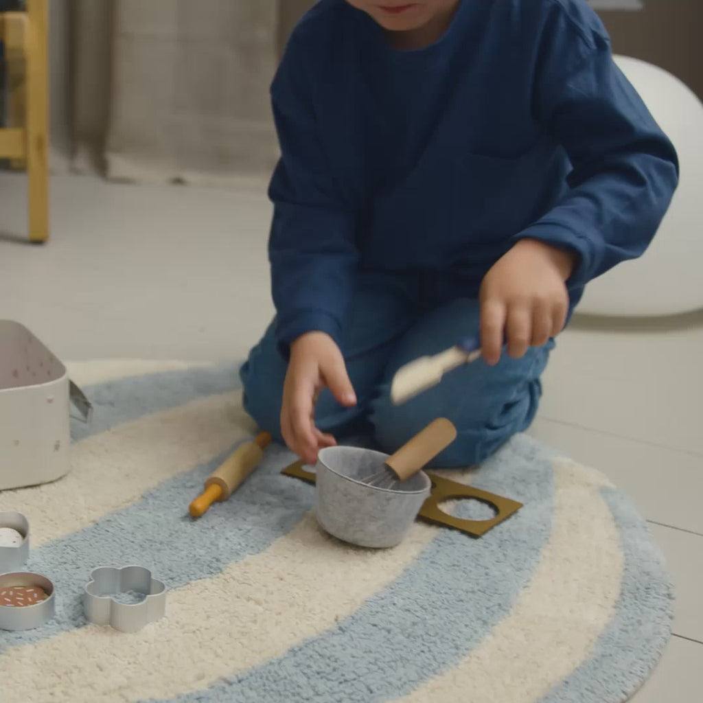 Ispira la creatività del tuo piccolo con il delizioso set da gioco Little Baker di FILIBABBA. Perfetto per giovani pasticceri, questo set porta alla vita un mondo di giochi di ruolo immaginativi, dalla preparazione di biscotti per gli orsacchiotti alla creazione di torte per i tè., , Il set include diversi strumenti essenziali per la pasticceria: formine per biscotti, biscotti, impasto, frusta, ciotola per mescolare, mattarello e spatola. Conservato in una valigetta robusta in cartone con maniglie e cerniere in metallo, il set è sia pratico sia decorativo. È perfetto per mantenere tutto in ordine a casa o per portarlo nelle avventure. Il set stimola la creatività, il gioco di ruolo e lo sviluppo delle abilità motorie fini. Abbinalo al grembiule e al cappello da chef di FILIBABBA per un'esperienza di gioco ancora più piacevole!, , Attenzione: Il set contiene piccole parti che potrebbero rappresentare un rischio di soffocamento. Adatto a bambini dai 3 anni., , Le mie caratteristiche speciali:, - Include diversi strumenti per la pasticceria: formine per biscotti, biscotti, impasto, frusta, ciotola per mescolare, mattarello e spatola.